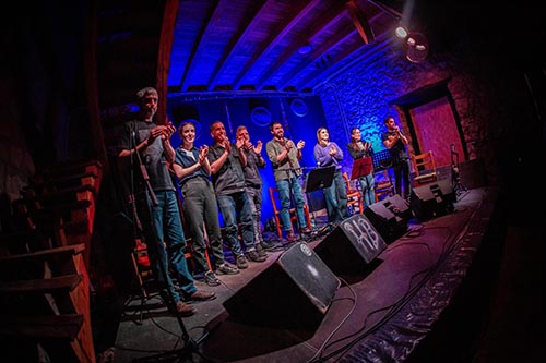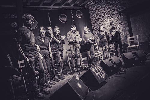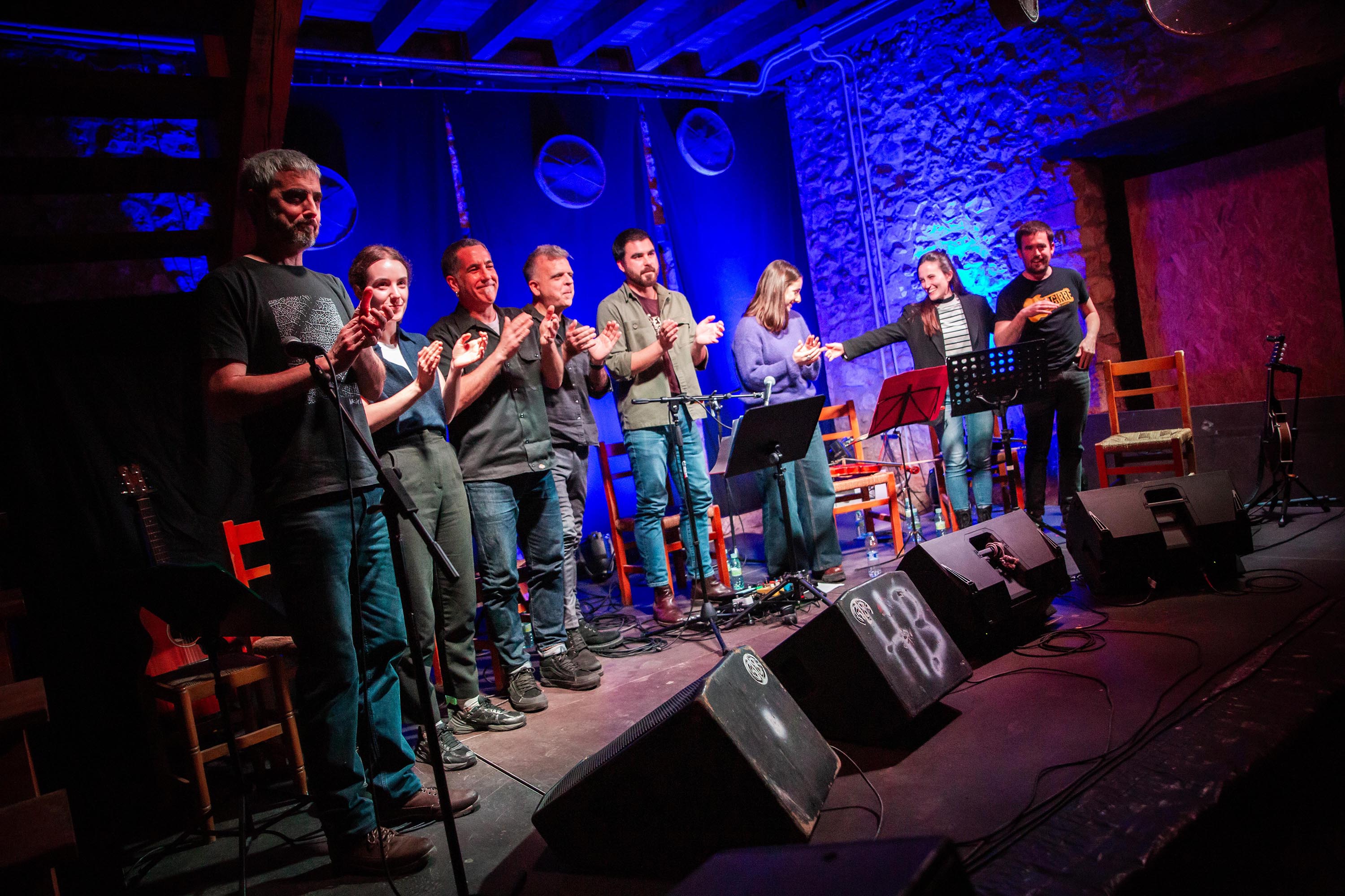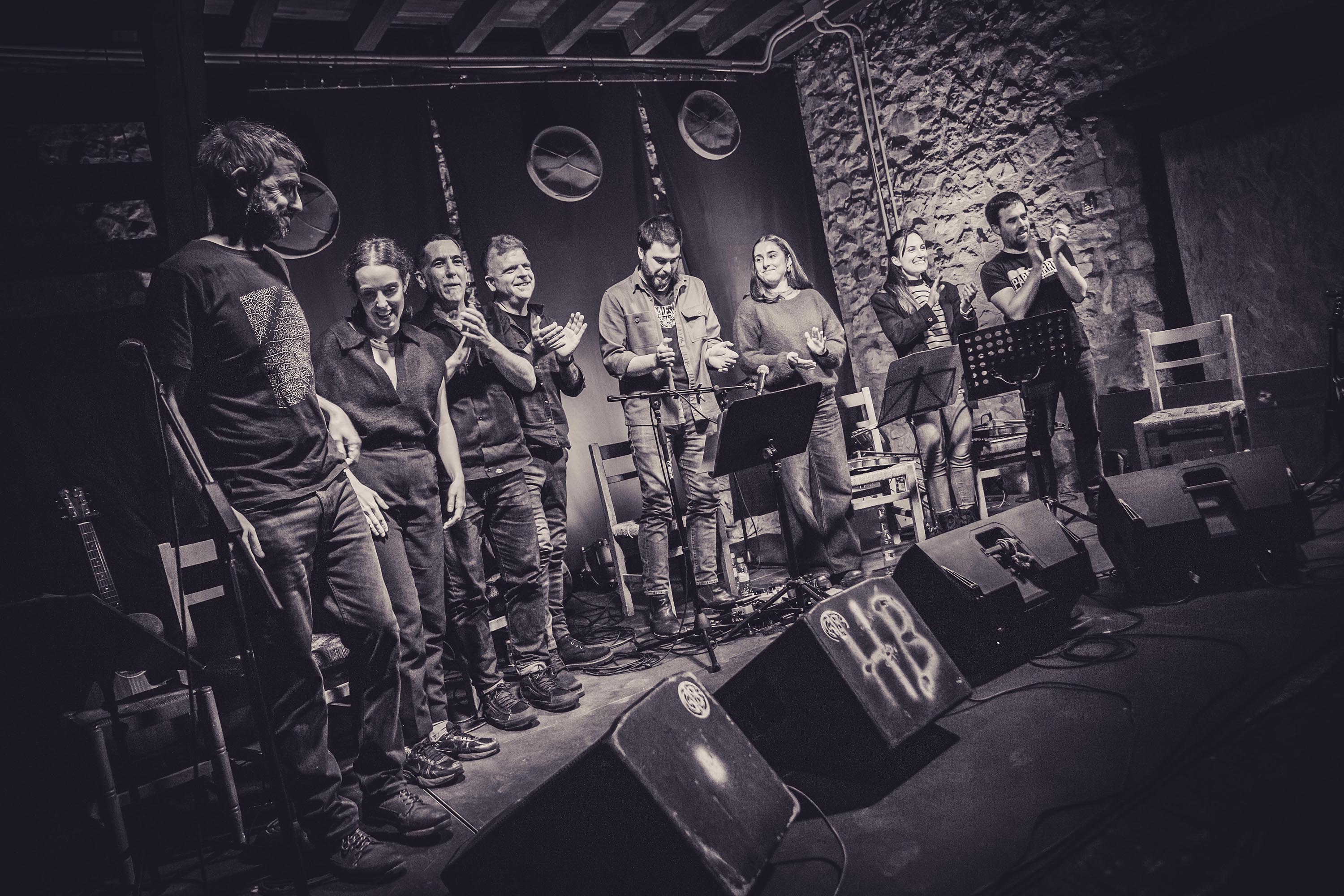 Mungiako Larrabizker estudioan grabatu genuen 2025eko ekainean hasi eta urriaren amaiera bitartean. Mariana eta Uxueren biolinak Urdulizko Tio Pete estudioan jaso genituen. Berba guztiak Galbahea poema liburukoak dira salbu eta Wafa kantakoak. Horren berbak Koldo Izagirrek sortu zituen (https://susa-literatura.eus/liburuak/poes4434). Musika: Taldekide guztion artean ondu genituen. Ametsek, Gorkak eta Maiak grabatu aurretik genituenak hobetu zituzten. Txoritxu txilibitaria, garia ereiteko Larrabetzun kantatzen zuten doinua da. Angeles Olealdekoari eta Maria Elosegiri ikasi genien: https://ahotsak.eus/larrabetzu/pasarteak/lar-001-003/. Belatzarenari piezaren doinua herriarena da, Xiberutarrei ikasi dieguna. Gaizka Sarasolak beretik moldatu zituen biak. Wafa kantarena Tapia eta Leturiarenetik moldatu dugu. Galbahea poema liburua irakurri edota entzuteko: https://susa-literatura.eus/liburuak/poes96 Ezkerrak: Etxekooi, maite zaituztegunoi, maite gaituzuenoi. Amets, Gaizka, Gorka eta Maiari. Lastrari. Susako Leire, Itziar, Josu eta Mikeli. Euskarazko kulturgintzan lanburkide zaituztegun guztioi. Poesia eta kantua maite dituzuenoi. Euskalduna izatea ez da aski Euskaldunak izatea ez da asko Euskalduna ez da aske |